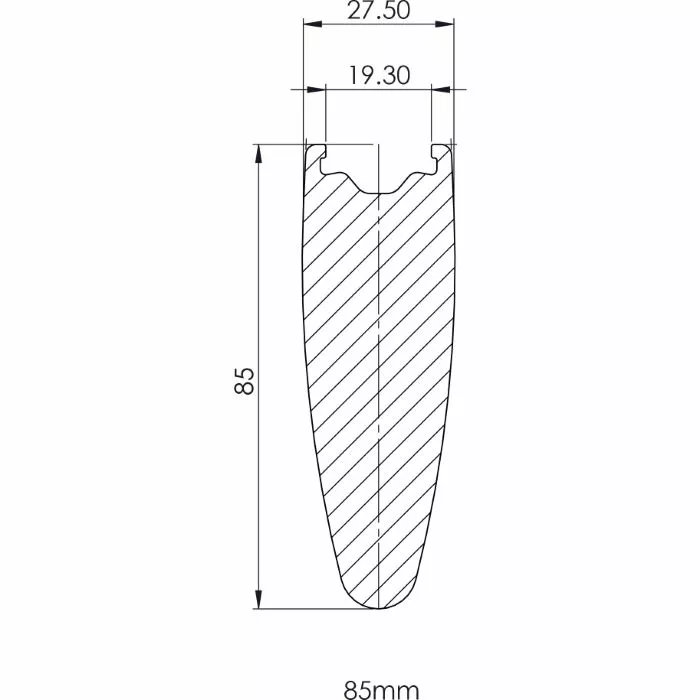 - Rim Dimensions: Profile: 85mm; Internal Width: 19mm; External Width: 27.5mm